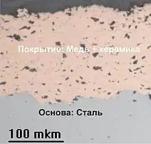 Покрытия, создаваемые таким способом, представляют собой металлическую матрицу с внедрёнными в неё керамическими частицами (см. рис.)