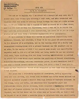 H. P. Lovecraft, «Cool Air», The Dunwich Horror and Others, Sauk City, WI: Arkham House, pp. 203—207.