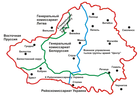 - Генеральный округ Белоруссия Рейхскомиссариата Остланд — около трети БССР.