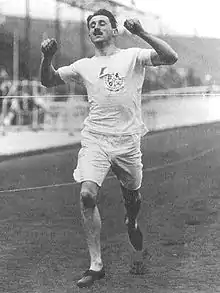 ![]() Уиндхем Холсуэлл во время повторного забега на 400 м в 1908 году | ||