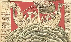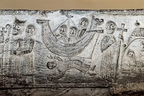 Изображения лодок и судов подобной конструкции широко распространены и в Средиземноморье, в первую очередь в Италии — лодка[9] и трёхмачтовое судно[10] на мозаике в Соборе Святого Марка в Венеции (конец XIII века), два нефа на барельефе в Пизанской башне[11], изображения нефов в тетради Канала (итал. Zibaldone da Canale) (XIV век) и другие.