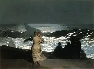 Уинслоу Хомер[7] (англ. Winslow Homer; 24 февраля 1836, Бостон, Массачусетс, США — 29 сентября 1910, Праутс-Нек, Мэн) — американский художник и график, основоположник (наряду с Томасом Икинсом) американской реалистической живописи. Наиболее знаменит своими морскими пейзажами. Известен как своими работами маслом, так и акварелью. Большинство исследователей рассматривают Хомера как крупнейшую фигуру в американском искусстве XIX века, оказавшую влияние на всё последующее развитие американской живописи.