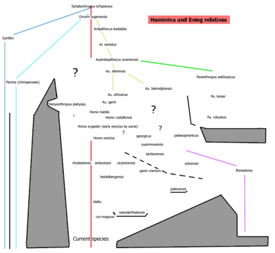 По классификации М. Гудмена (en:Morris Goodman) в подтрибу Гоминина входят ещё гориллы (как род) и шимпанзе с бонобо, которых он включает в род Homo как виды Homo troglodytes и Homo paniscus[2][3].