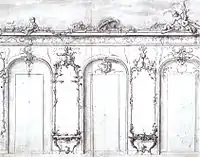 Проект ламбри для Золотой галереи Нового крыла дворца Шарлоттенбург в Берлине. 1742—1743