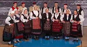 Ансамбль народной музыки из Сисака в Загребе, участники одеты в народные костюмы Посавины