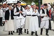 Участники мероприятия «Proljeće u Primorju» в селе Любач (Дубровницко-Неретвинская жупания) исполняют народные танцы, 2014 год