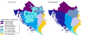 - западный (младоикавский) диалект (подавляющее большинство носителей — хорваты)[3];