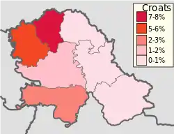 | Округ | Общяя численность | Численность хорватов | Доля хорватов |