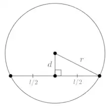 - Формула, напрямую выводящаяся из теоремы Пифагора (рис. 3): , где — длина хорды, — радиус окружности, — расстояние от центра окружности до хорды.