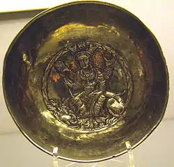Первое упоминание хорезмийцев встречается в Бехистунской надписи (522—519 до н. э.) Дария I[17]. Там же находятся высеченные рельефы восточноиранских воинов, в числе которых есть и хорезмийский воин, рядом с согдийским, бактрийским и сакским воинами, свидетельствующие об участии хорезмийцев в военных походах правителей Ахеменидской державы[18].