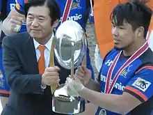 ![]() Сёта Хориэ (справа) с трофеем японской Топ Лиги. | |||||||||||||||||||||||||