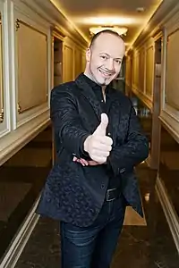 Константин Кабо — баритональный тенор, композитор. Родился в 1974 году в Москве. Окончил Хоровое училище им. Свешникова, затем РАТИ (ГИТИС) по специальности «актёр музыкального театра». Пел в мюзиклах «Норд-Ост» (роли: Ромашов, Валька Жуков, ансамблевые), «12 стульев» (роли: Безенчук, ансамблевые), «Ромео и Джульетта» (роль: Тибальт), «Mamma Mia!» (роли: Гарри, Билл, ансамблевые). |