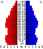 Население округа по возрастному диапазону по данным переписи 2000 года распределилось следующим образом: 25,10 % — жители младше 18 лет, 8,20 % — между 18 и 24 годами, 26,50 % — от 25 до 44 лет, 24,50 % — от 45 до 64 лет и 15,80 % — в возрасте 65 лет и старше. Средний возраст жителей округа составил 38 лет. На каждые 100 женщин в округе приходилось 95,50 мужчин, при этом на каждых сто женщин 18 лет и старше приходилось 93,00 мужчин также старше 18 лет.