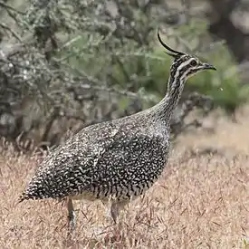 Хохлатый тинаму[1][2] (лат. Eudromia elegans) — бескилевая оседлая птица, обитающая в Аргентине. Длина тела — 38—41 см. Вес — от 400 до 800 г. Представитель тинаму, имеющий средние размеры. Характерные черты — белая полоса на боках головы и длинный вздёрнутый хохолок. Ноги крепкие, средний палец отсутствует. Это пугливые птицы, которые держатся небольшими группами в лесах, на лугах и в кустарниках.