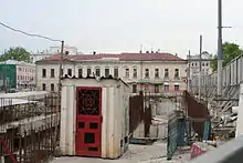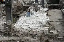 Фундамент стены Белого города, пробитый металлическими конструкциями. 2007 год