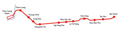 Строительство возобновится в 2020 году Стадия 1: Бантхань ↔ Тхам Луонг с 11 станциями.[18] | |