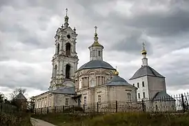 Преображенский храм являет в себе уникальное сочетание классического убранства с композицией нарышкинского барокко. Храм удивительно пропорционален: два восьмерика на четверике не устремляются с силой вверх, а как бы парят в пространстве, не взлетая и не принижаясь. Колокольня Преображенского храма построена в 1829 года в стиле классицизма, со сложенным рисунком колонн, арок и постаментов. Колокольня украшена 14 статуями пророков и преподобных. Бытует мнение, что колокольня была построена по проекту архитектора Растрелли.