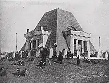 На берегу реки Казанки, вправо от дамбы, на незначительном возвышении стоит монумент пирамидальной формы, увенчанный крестом. Это памятник победы русских над татарами в 1552 году. Наружность памятника мрачная, отвечающая цели — указывать братскую могилу десятков тысяч русских воинов. Высотою монумент около 10 саженей, в основании во все четыре стороны тоже на 10 саженей, с четырёх сторон его устроены фронтоны на колоннах.