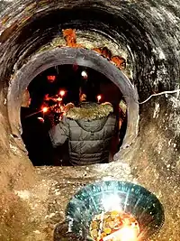 Большая часть останков находится внутри кургана. Человеческие кости, как выяснилось во время реконструкции 1830—1832 года, занимали подземелье на многие метры в глубину. Поэтому фундамент вместо помоста сделать было невозможно.