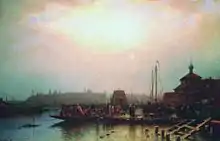 Увиденная с дамбы, Казань словно поднимается из глубин огромного озера. Открываясь взору со своим старым кремлём, которого никогда не достигали никакие пожары, и колокольнями своих шестидесяти двух церквей, она являет собою зрелище самое фантастичное.