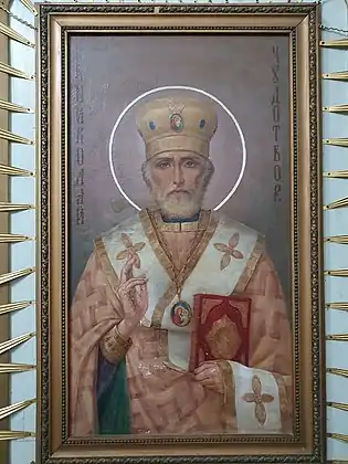 Иконы для иконостаса написал Михаил Лобанов, его же кисти принадлежит образ святителя Николая Чудотворца. Иконы двенадцати праздников — работы художника Николая Мишаткина. Запрестольную икону священник Фёдор Вилькок привез из Китая. Две большие клиросные иконы, изображающие святителя Алексия, митрополита Московского и преподобного Сергия Радонежского выполнил художник Дмитрий Измайлович[5]