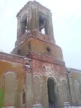 Приходская церковь, кирпичная, фундамент из бутового камня; корабельного типа, архитектурный стиль — поздний классицизм. Два придела: левый — святителя Николая Чудотворца, правый — Знамения Божией Матери. Колокольня.