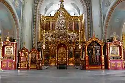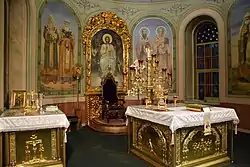 - левый — святителей Московских Петра и Алексия, преподобного Сергия Радонежского и пророка Осии.