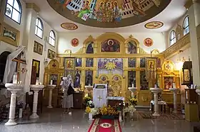 - нижний — во имя мученицы Фотинии с баптистерием в форме креста для совершения Таинства Крещения с полным погружением в воду; благодаря отдельному входу[59] имеется возможность совершать отпевание усопшего с принесением тела внутрь храма[57].