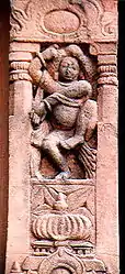 О том, что Вишну является главным божеством храма, нет никаких сомнений. На это указывает рельеф над дверным проёмом (так называемый «лалатабимба», lalatabimba). На нём изображён Вишну, сидящий словно на троне на тысячеглавом змее Ананта-Шеше. Рядом с ним находится его супруга, богиня Лакшми, которая массирует стопы Вишну, а также два аватара. Справа расположен Нарасимха (человек-лев), а слева — Вамана (карлик-брахман). Рельефы в широких и глубоких нишах по трём внешним сторонам храма изображают различные сцены с Вишну. На север смотрит образ Вишну-защитника, освобождающего царя слонов от нападения крокодила (знаменитая сцена «Гаджендра-мокша»). Однако вместо традиционного крокодила в ранней версии истории фигурирует змея, которую можно увидеть на барельефе. На востоке находится панель с Вишну в облике двух мудрецов Нара и Нараяны. Наконец, лицом на юг Вишну возлежит в молочном океане на змее Ананта — образ, получивший название Ананташаяна[12].