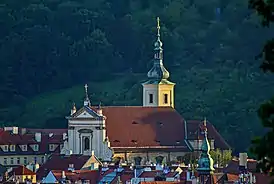 В 1584 году на месте, где сейчас стоит храм, была возведена часовня Святой Троицы. В храме было разрешено проводить богослужения после Белогорского сражения, когда Католическая лига разбила войско протестантов. В сентябре 1624 года церковь отдали в распоряжение ордена кармелитов (временно), а 3 июня 1784 указом Иосифа II храм был отдан кармелитам под их покровительство уже окончательно.