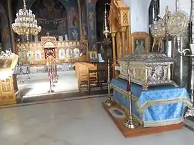 Резной деревянный иконостас храма выполнен в 1973 году. Храм расписан греческими иконописцами Г. Карусосом и К. Пандазисом[1].