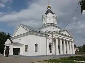 Кирпичная церковь в стиле классицизма сооружена в 1792 году как зимний храм при Воздвиженской церкви, к северу от неё. Прямоугольная в плане постройка с симметричными алтарём и притвором украшена боковыми шестиколонными портиками. Декоративный барабан с шатровым куполом сооружён во 2-й половине XIX века. На хорах был устроен Успенский придел.