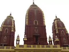 Храм увенчан тремя высокими разноцветными куполами (шикхарам) из красного песчаника. Самый высокий из них, посвящённый Лакшми-Нараяне, имеет 50 метров в высоту а два других — 35 метров. По традиции храм ориентирован на восток и первые лучи восходящего солнца озаряют вход, проникая в святилище.