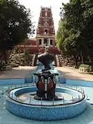 Во дворе храма можно видеть каменный столб с портретами Лакшми Баи и Махарана Пратапа; изваяния богов, святых, раджей, а также животных. Огромные раскрытые пасти льва и крокодила ведут в искусственные гроты. В центре пруда стоит статуя бога змей Шеша-нага.