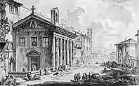 Храм Портуна, превращённый в церковь Санта-Мария-Эгициака. Гравюра Дж. Б. Пиранези. 1770-е гг.