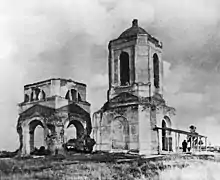 в 1944 году к храму-колокольне сделали маленькую пристройку при входе «ввиду крайней нужды». В 1944 году была официально зарегистрирована религиозная община и здание церкви передано в пользование верующим. После войны (в 1947 году) храм приходит в упадок: от бывшего храма остались развалины, сохранилась лишь его средняя часть и колокольня, прежде соединённые между собой. Без креста и крыши от колокольни остался остов[5]. Лишь в 1960 году храм был отремонтирован: укреплены несущие конструкции стен и фундамента, сооружена кровля. На следующий год в адрес Уполномоченного по делам религии по Белгородской области был направлен документ, в котором исполком районного Совета депутатов трудящихся просил ускорить рассмотрение вопроса о закрытии означенной выше церкви.
