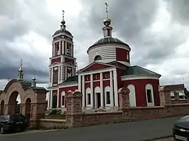 Трёхпрестольный храм в форме «корабль» построен в 1836 году в стиле зрелого классицизма. Состоит из четверика с куполом, трапезной и колокольни. Имеет статус памятника архитектуры федерального значения.