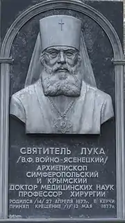 На фасаде храма в 1997 году установлена табличка работы скульпторов В. Ф. Будина и А. И. Мельникова в память о Луке (Войно-Ясенецком). Это послужило основанием для ошибочного утверждения, что святитель Лука был крещён в этом храме ([Л 67][Л 66]), тогда как в реальности крещение состоялось 1 мая 1877 года в керченском Свято-Троицком соборе. Крестили будущего святителя протоиерей И. В. Щербинин и диакон Ф. Ф. Гладкий. Поскольку Свято-Троицкий собор не сохранился, табличку установили на храме Иоанна Предтечи[Л 68].