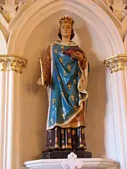 Над главным алтарём находится живописное изображение Преображения Господня. На алтаре левого нефа в центре расположена статуя св. Людовика, слева от него — статуя св. Бернара Клервосского, справа — св. Франциска Сальского. Немного правее, на отдельном постаменте, статуя св. Антония Падуанского. Также, в алтаре левого нефа, установлены небольшие статуи святых покровительниц Франции: св. Жанны д’Арк и св. Терезы из Лизьё.