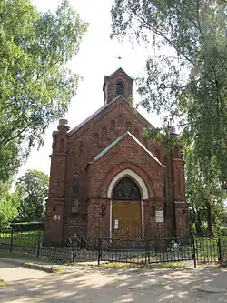 Здание церкви построено из красного кирпича в неоготическом стиле. Фронтон храма увенчан небольшой башней. Ранее на башне был шпиль, до нашего времени он не сохранился. По бокам находятся ещё две башни, увенчанные крестами. Боковые стены расчленены шестью высокими стрельчатыми окнами с каждой стороны. В задней части храма к основному нефу примыкает более низкий, прямоугольный в плане пресвитерий, по обе стороны которого располагаются ризницы.