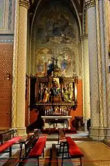 Главный алтарь, высотой 16 метров, был изготовлен Антонином Туреком. Алтарь украшен драгоценными и полудрагоценными камнями, на нём возвышается распятие, символ Бога Отца и статуя Святой Людмилы работы Ч. Восмика. Рядом с алтарём на стене находится фреска с девятью сценами из жизни Святой Людмилы. Мраморный алтарь versus populum («лицом к прихожанам»), освящённый 16 сентября 1992 года, в соответствии с требованиями II Ватиканского собора располагается в оптическом центре храма[5].