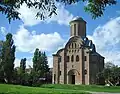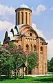 Храм небольшой по размерам (16×11,5 м в плане), с четырьмя восьмигранными столбами внутри, тремя апсидами, высокой главой, с изысканной и гармоничной композицией. В отличие от статических форм сооружений предыдущих времён, данная композиция храма является динамической, её стены стремительно нарастают вверх тремя рядами арок над основным объёмом. Вертикальность сооружения подчёркивается профилированными пилястрами. Вертикальные и криволинейные элементы, которые доминируют в композиции, уравновешиваются горизонтальными ярусами окон второго этажа, пасами декоративных ниш разной формы и масштаба, меандровым фризом, напоминающим архитектуру XI века, сетчатым орнаментом на апсидах. Вертикальные профилированные пилястры на разных высотах завершаются карнизами. Розовый цвет стен сочетается с белыми штукатуренными декоративными нишами и разноцветными орнаментами на порталах.