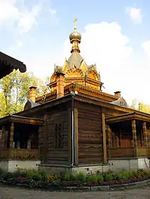 Расположенный в парке, недалеко от пруда, деревянный храм с печным отоплением позволяет человеку забыть на время современную обстановку и окунуться в историю России.