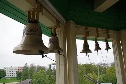Купола и кресты выполнены в Эстонии. Колокола отлиты на Воронежском колокололитейном заводе Анисимова[8].