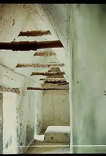 В святилище одна за другой располагаются три комнаты, разделённые дверными проёмами с резными деревянными притолоками из саподиллы[6]. Эти комнаты — единственные доступные помещения в храме[5]. Первая притолока не имеет резьбы, а вторая и третья искусно украшены[2]. В 1877 году Густав Бернулли снял их со своего места, и теперь они хранятся в Музее Культур в Швейцарии[2]. Резьба по дереву была выполнена вне храма, готовые притолоки занесли в храм и установили на проёмы. Задачу осложняло то, что древесина саподиллы очень тяжёлая (1120 кг/м³)[7]. Крыша и кровельный гребень были установлены уже после притолок[7].