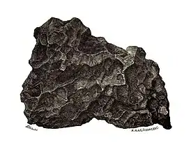 наблюдаемое падение; состав: Fe 89%, Ni 10.5%, Ge 89.4 ppm, Ga 74.5 ppm |