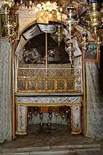 | Палестина, Вифлеем 31°42′15″ с. ш. 35°12′27″ в. д. | Иерусалимская православная церковь, Иерусалимский патриархат Армянской апостольской церкви, Латинский Патриархат Иерусалима | На предполагаемом месте рождения Иисуса находится престол, под которым установлена 14-ти конечная звезда с надписью: «Здесь родился Иисус Христос от Девы Марии»[11][12]. |
