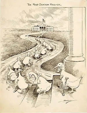 «Хромая утка» (англ. Lame duck) — в американском политическом сленге прозвище президента США, вскоре покидающего свой пост в результате проигрыша очередных выборов или исчерпания своего права выдвигать на них свою кандидатуру в соответствии с 22-й поправкой к Конституции США. (В особенности после того, как выбран его преемник[1].)