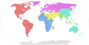 Первые три подтверждённых случая в Новой Зеландии. Регион Западной части Тихого океана (на карте - красным цветом) стал четвёртым регионом ВОЗ, задетым болезнью[93].