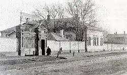![]() Ворота хрустально-стекольного завода Дютфуа на Большой Панской улице, снимок сделан в 1900 — 1912 годах | |